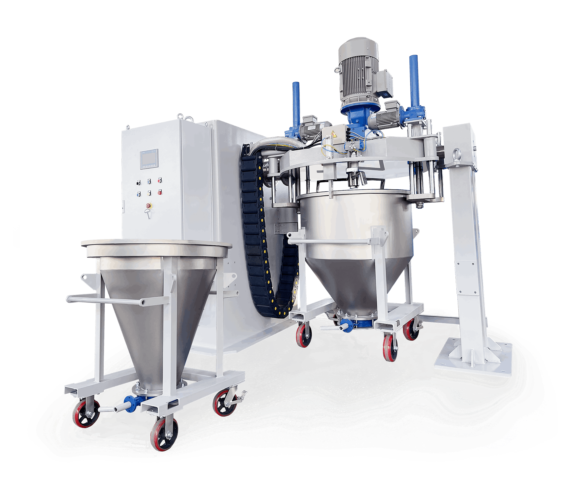 凌宇LCM F系列翻轉式混合機,其混合頭采用平底結構、攪拌槳高速變頻控制,混合均勻,溫升低,優異的快速清潔功能可應用到各個領域。